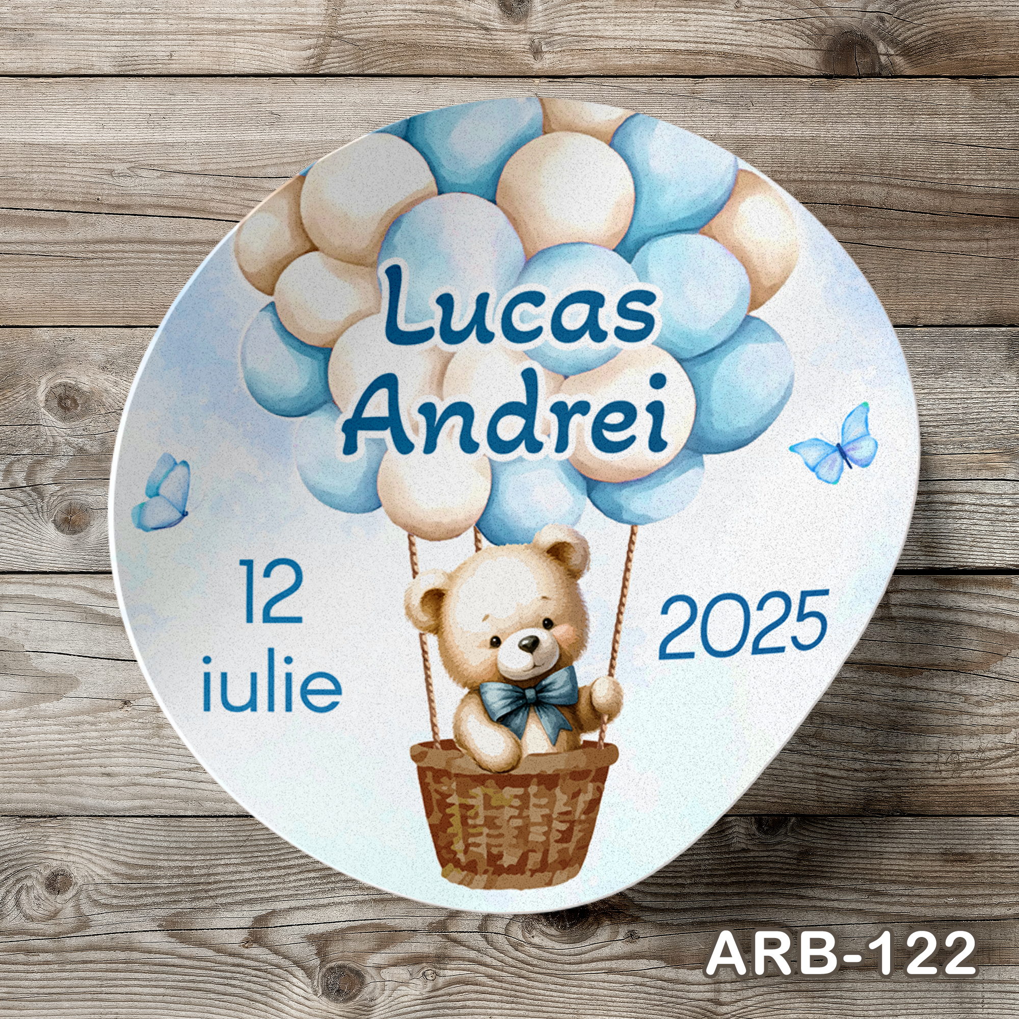 • Personalizare: numele copilului, data evenimentului și un text scurt opțional
