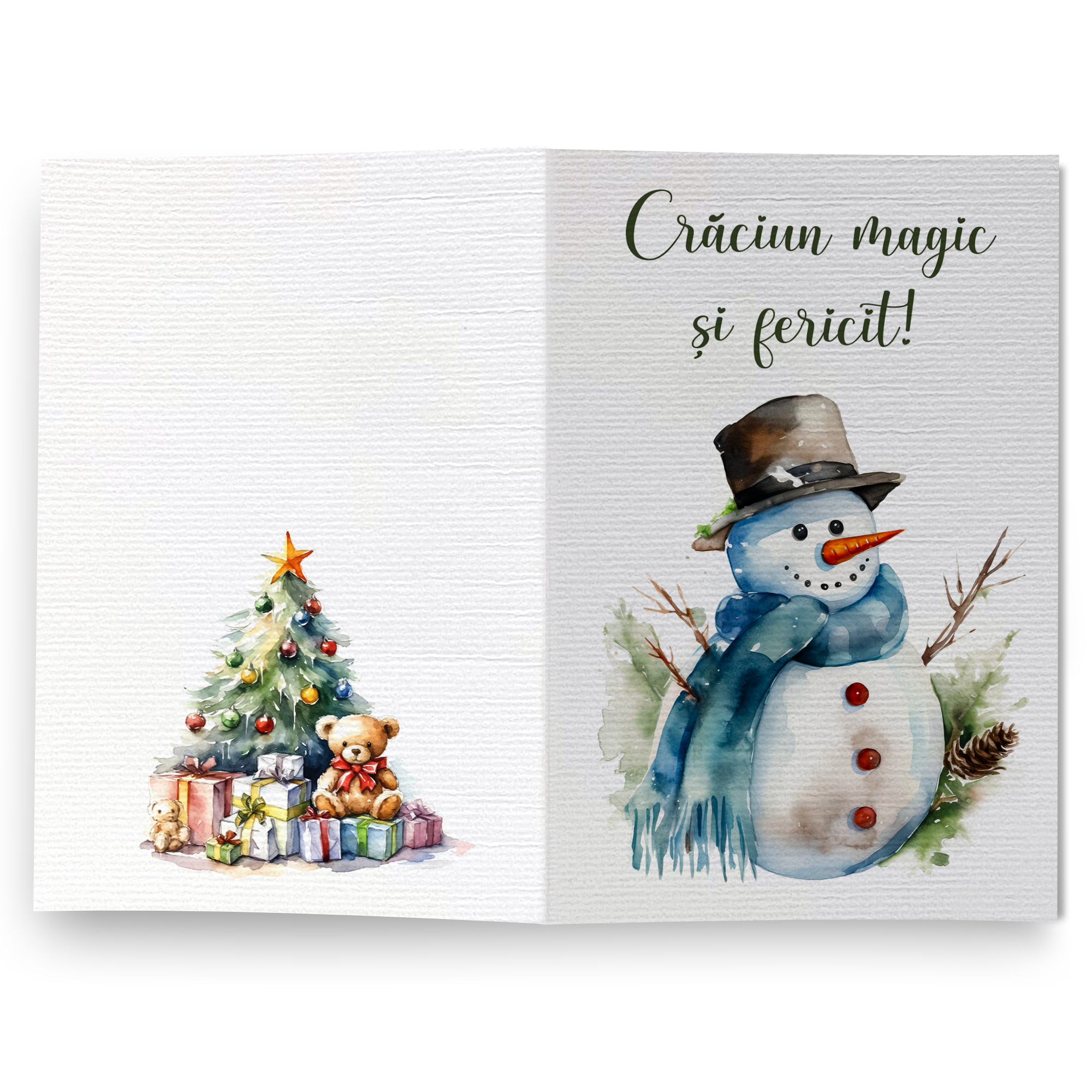 Felicitare: 10×15 cm inchisa, 20×15 cm deschisa, print foto pe carton texturat premium de 230 gr