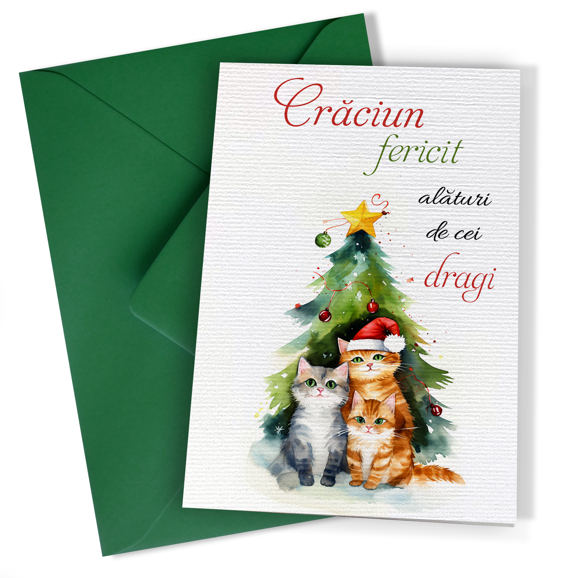 Felicitare de Craciun premium 10×15 cm cu plic verde inclus – FPC-40