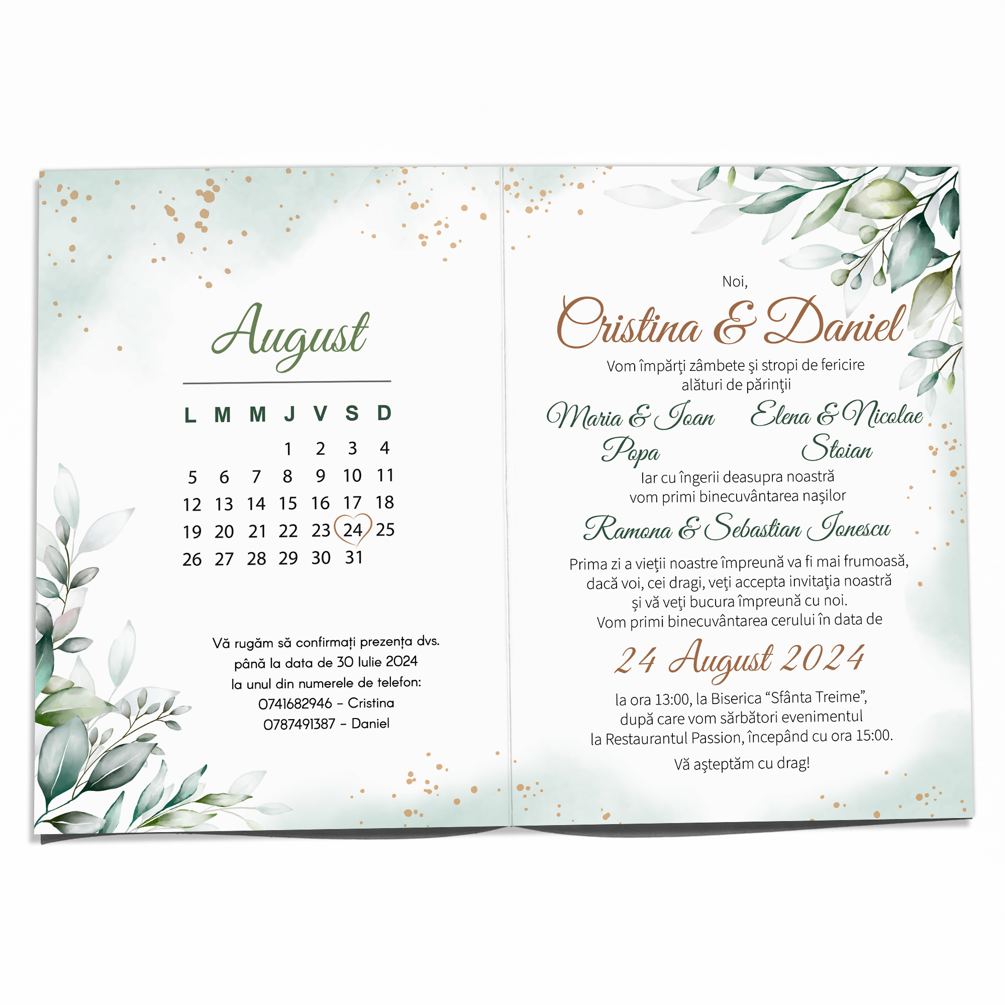 Aceste invitații reprezintă alegerea perfectă pentru cuplurile care doresc să își anunțe ziua specială într-un mod care reflectă eleganța, dragostea și bucuria pe care o împărtășesc. Invitațiile voastre vor fi, fără îndoială, un preludiu memorabil al celebrării care urmează.
