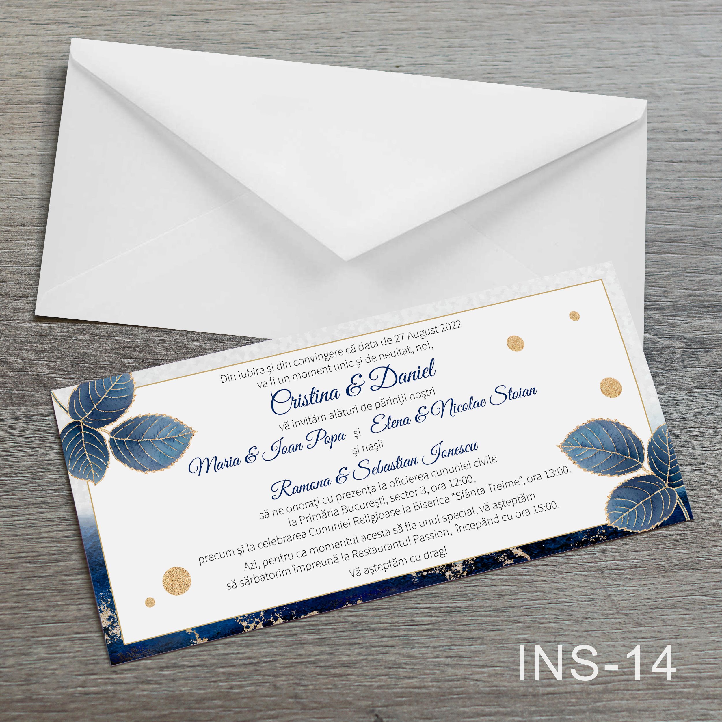 Invitatiile sunt simple si vin insotite de plic alb.