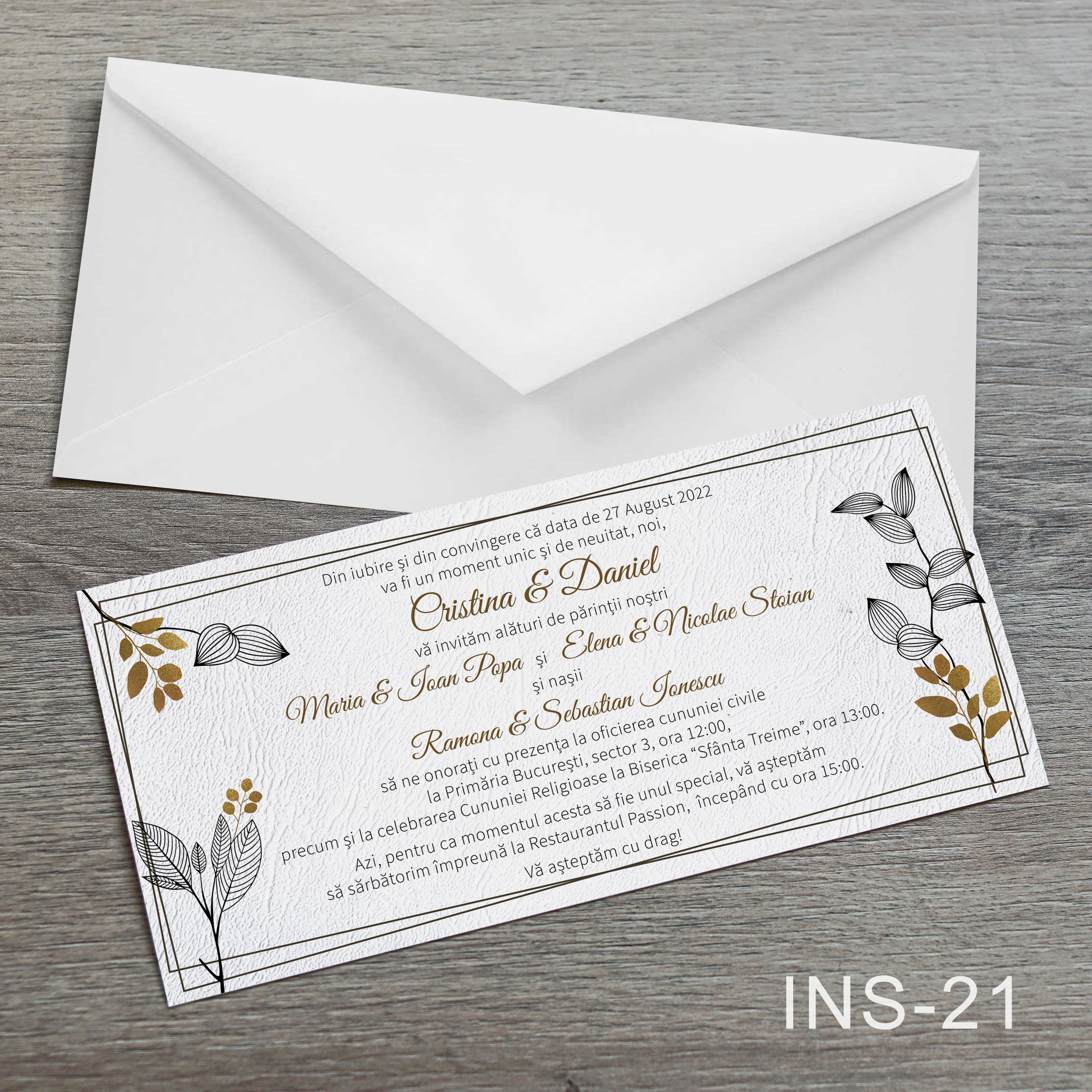 Invitatiile sunt simple si vin insotite de plic alb.