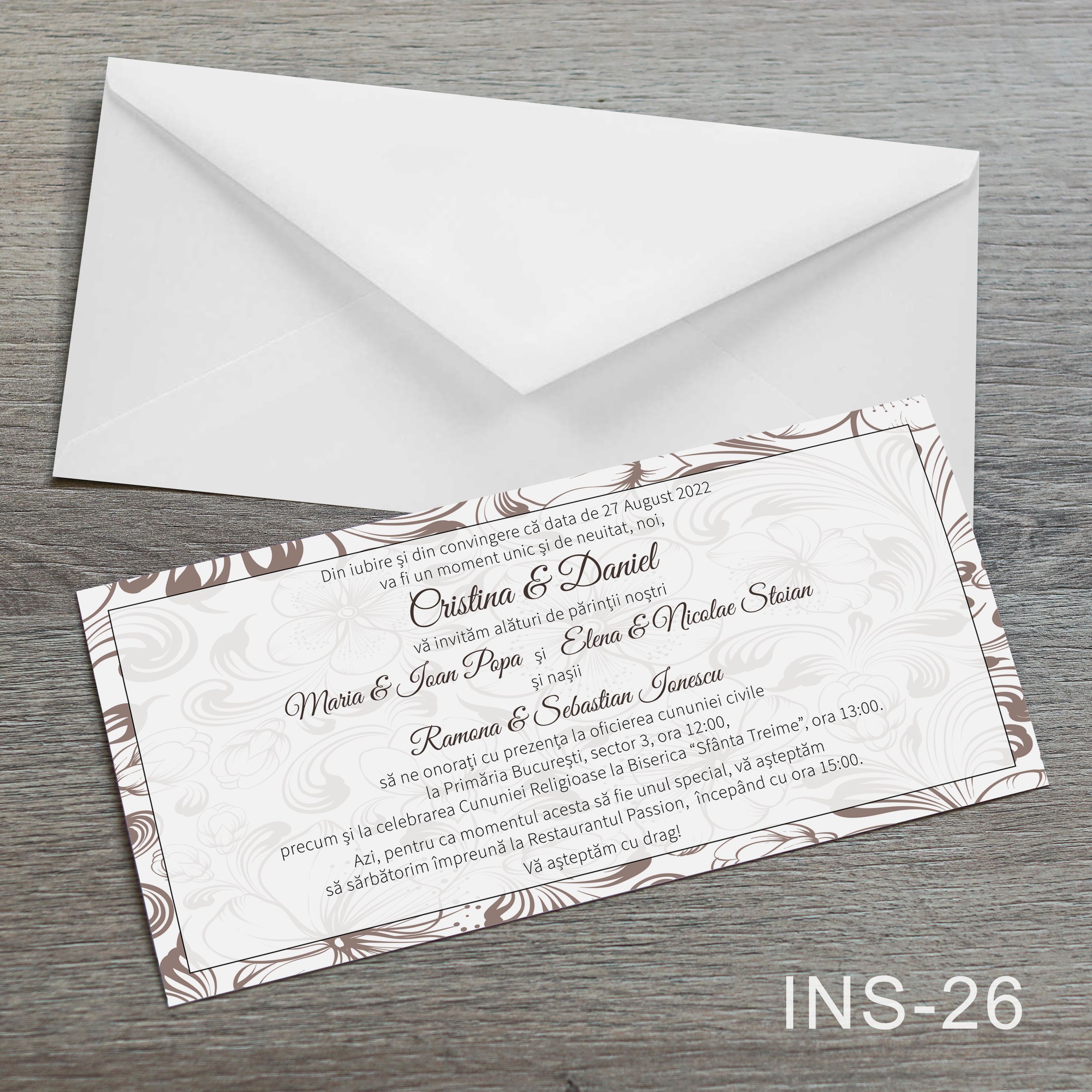 Invitatiile sunt simple, tiparite si ambalate in plic alb.