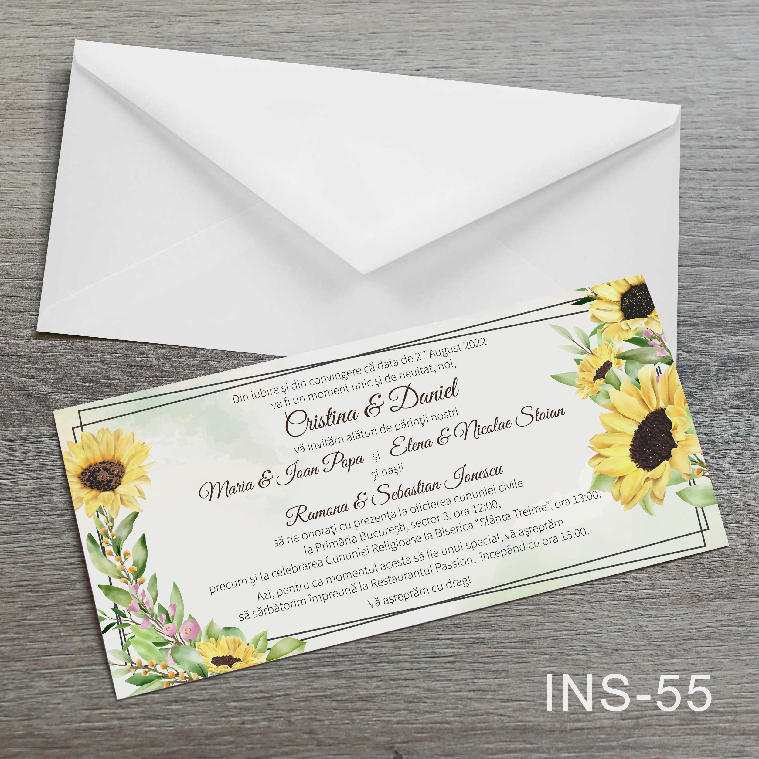 Invitatiile pentru nunta sunt realizate din carton lucios de 250g/mp.