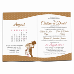 Cu dimensiunea A6 închis și A5 deschis, aceste invitații oferă spațiu suficient pentru creativitate și umor. Imprimate pe hârtie premium mată, calitatea lor este incontestabilă, iar textura mată adaugă o notă de sofisticare. Designul cu mire și mireasă stilizați transformă fiecare invitație într-o mică operă de artă, plină de personalitate și veselie.