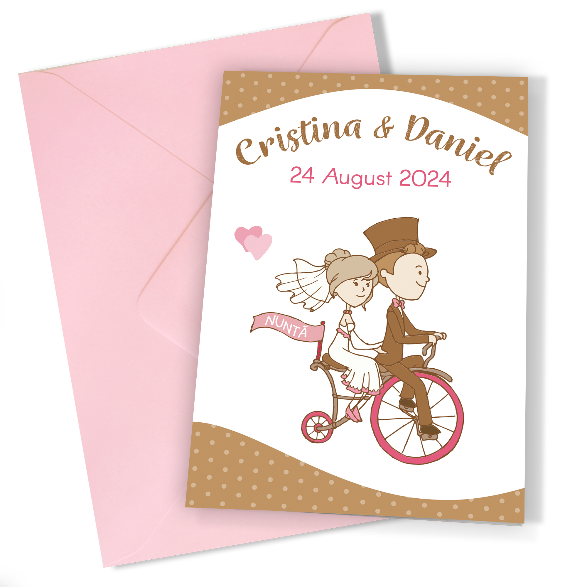 Invitatii nunta haioase cu plic Roz Deschis – Mire si mireasa – INC-22
