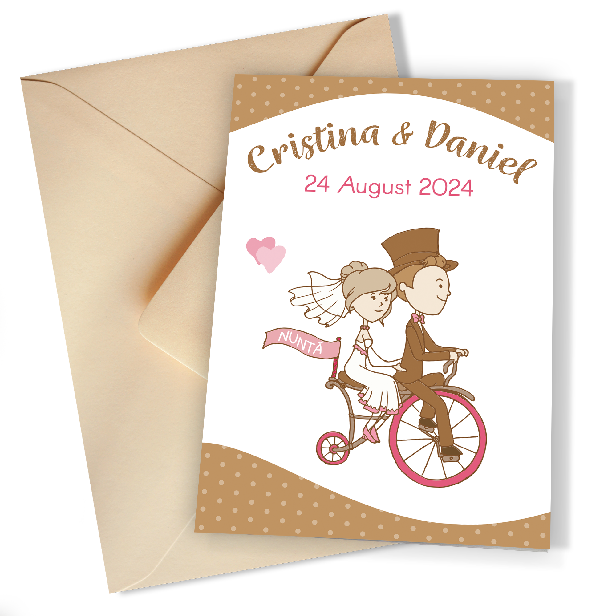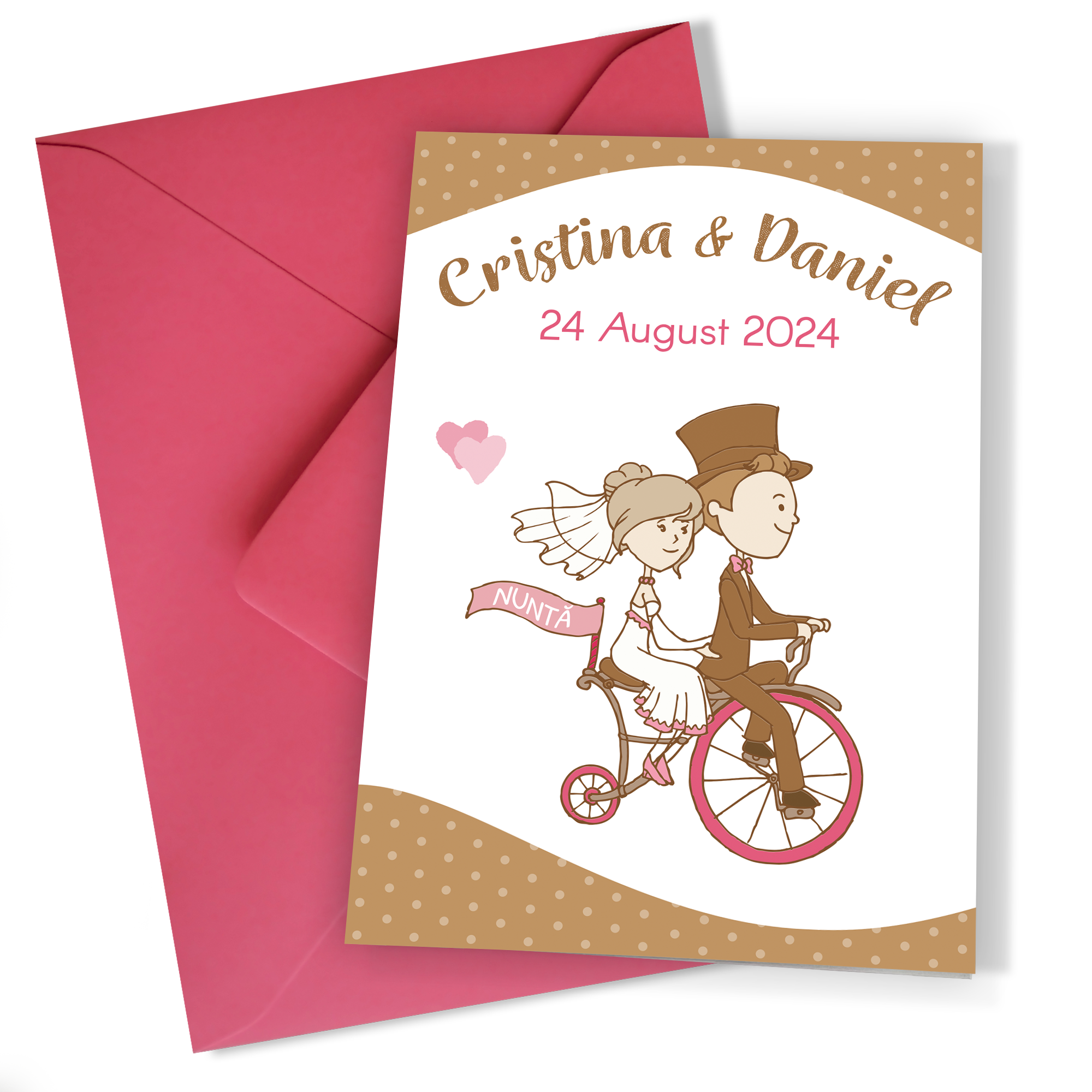 Invitatii nunta haioase cu plic Roz Deschis - Mire si mireasa - INC-22 Prețul inițial a fost: 4.70 lei.Prețul curent este: 4.00 lei. TVA inclus