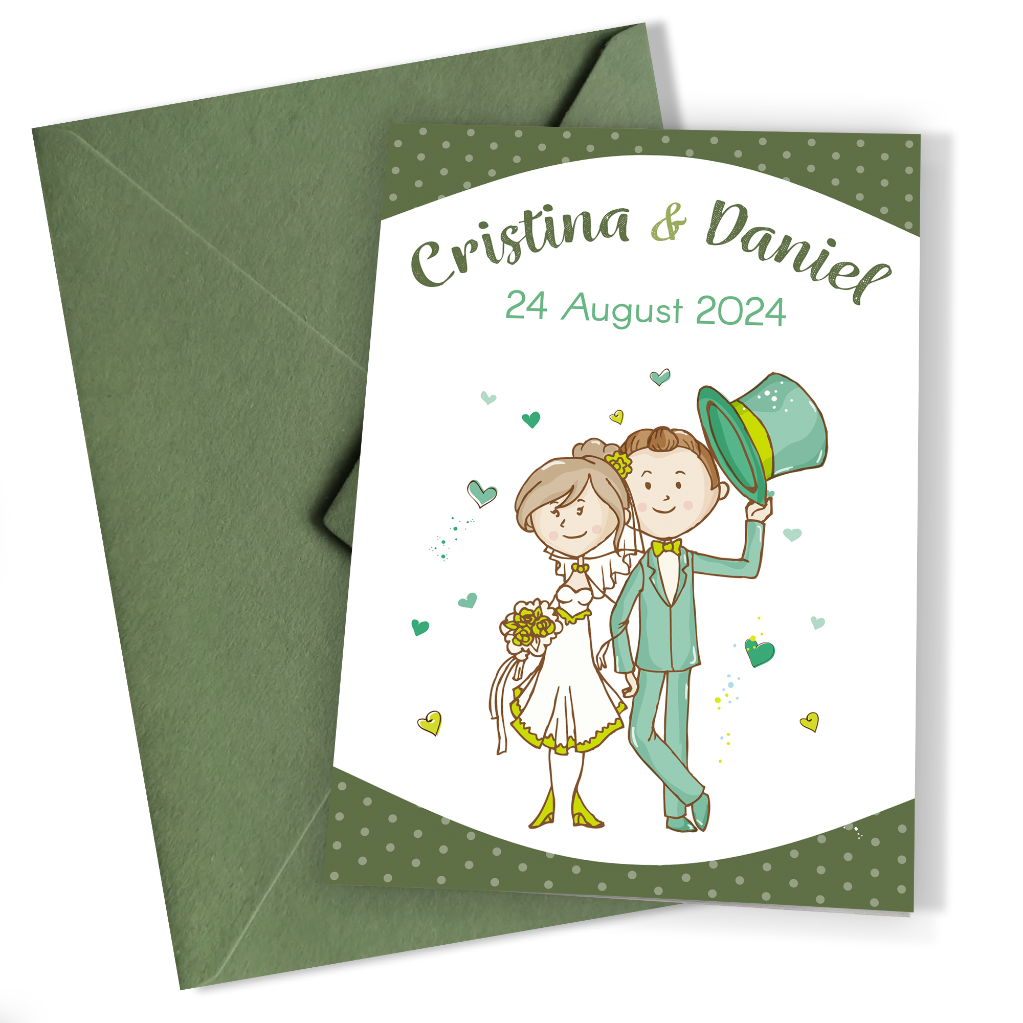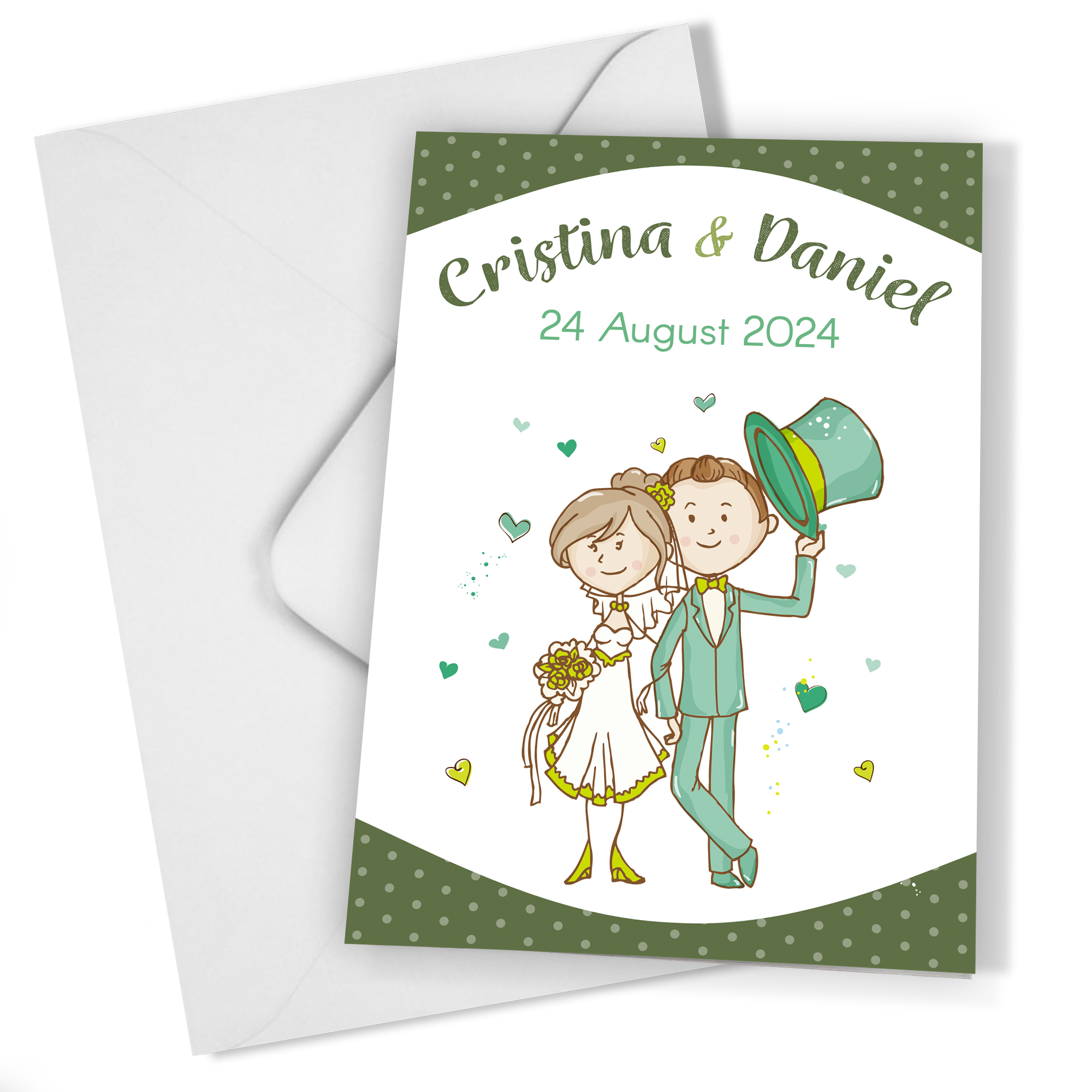 Invitațiile de nuntă haioase sunt perfecte pentru cuplurile care doresc să iasă din tipare. Ilustrațiile amuzante ale mirilor, pline de caracter și culoare, captează esența unei zile pline de bucurie și distracție. Fiecare detaliu este gândit să aducă zâmbete pe fețele oaspeților, pregătindu-i pentru o ceremonie neconvențională.