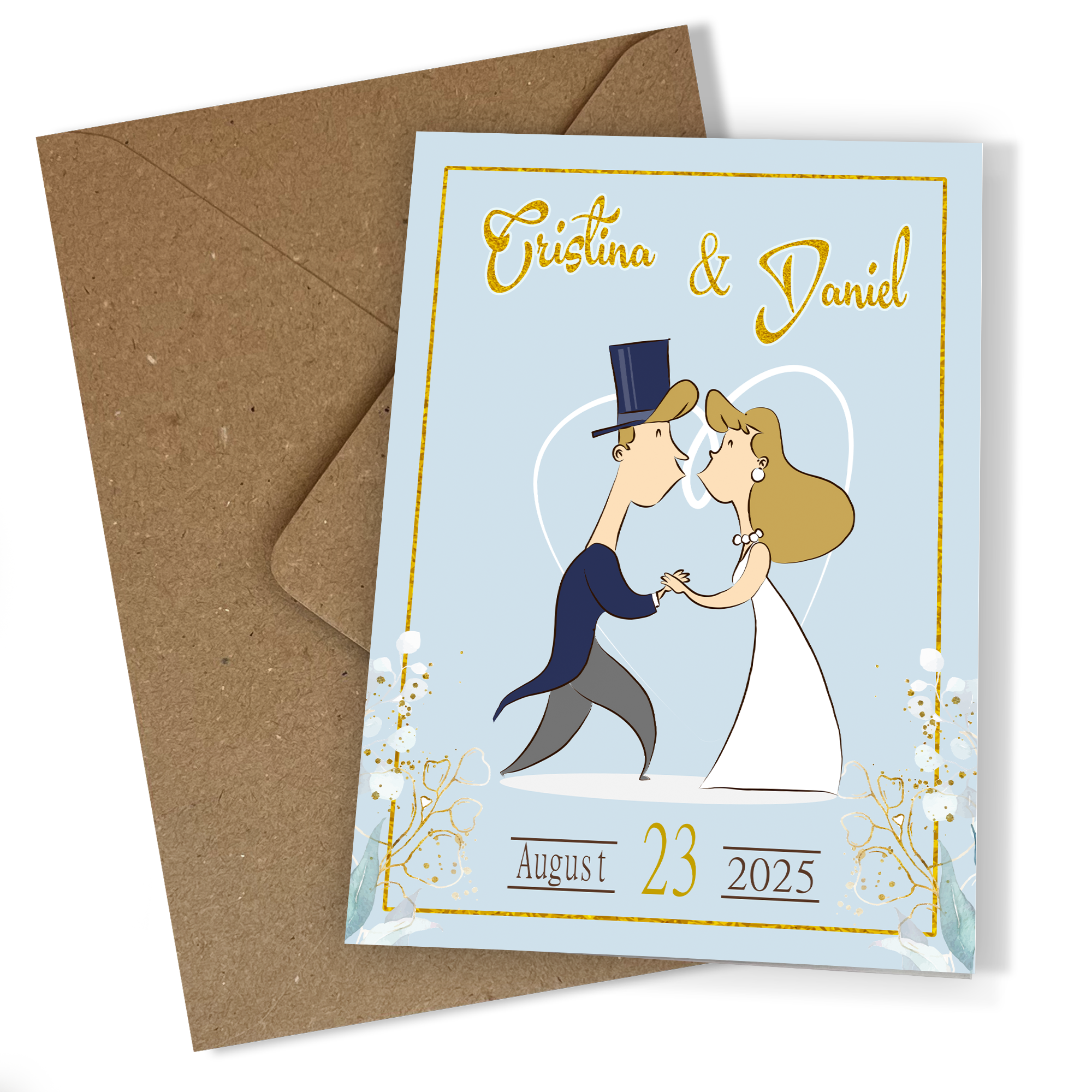 Invitațiile de nuntă haioase sunt perfecte pentru cuplurile care doresc să iasă din tipare. Ilustrațiile amuzante ale mirilor, pline de caracter și culoare, captează esența unei zile pline de bucurie și distracție. Fiecare detaliu este gândit să aducă zâmbete pe fețele oaspeților, pregătindu-i pentru o ceremonie neconvențională.