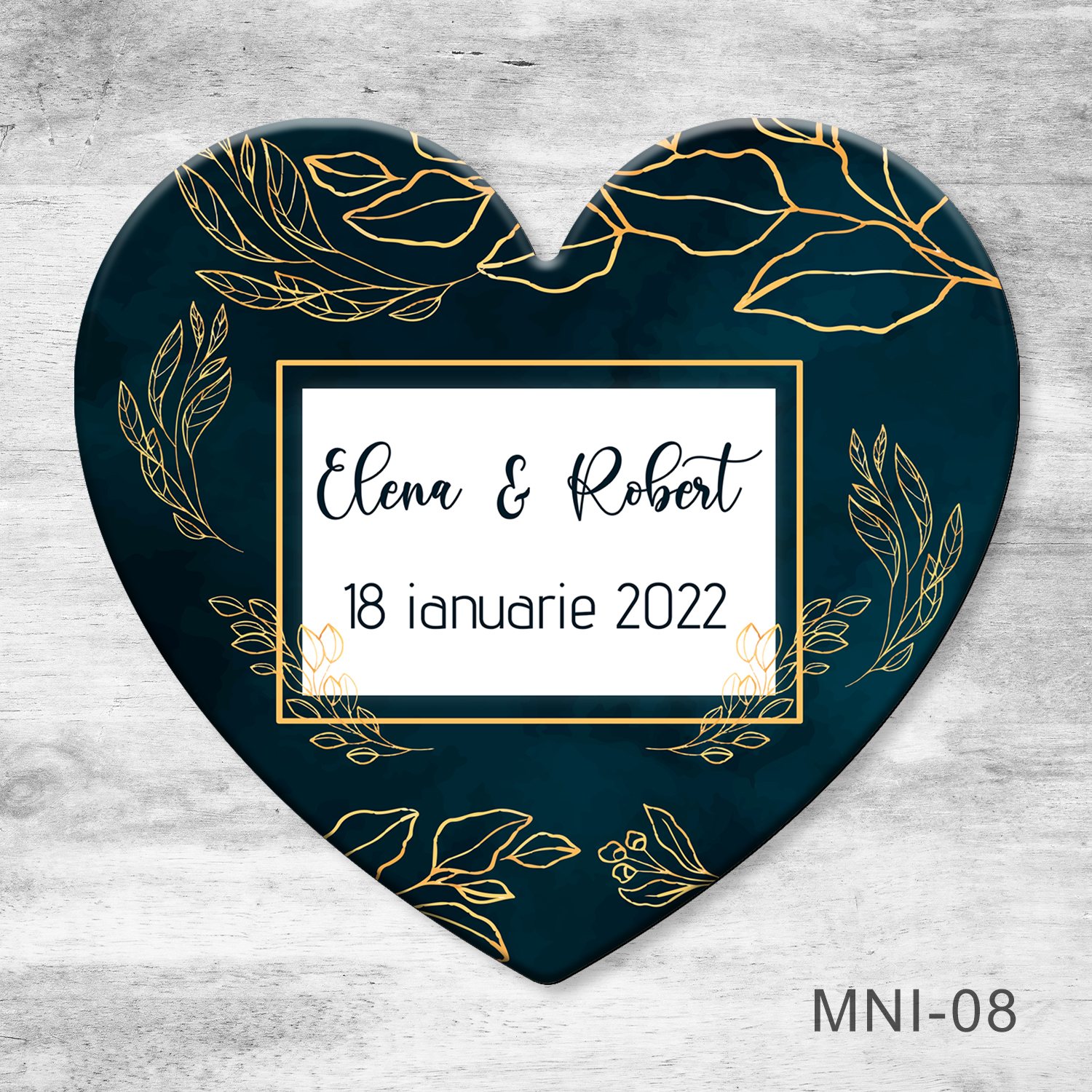 Marturiile de nunta – magneti in forma de inima personalizati cu numele mirilor si data evenimentului sunt alegerea perfecta pentru a oferi celor dragi o amintire deosebita cu ocazia casatoriei.