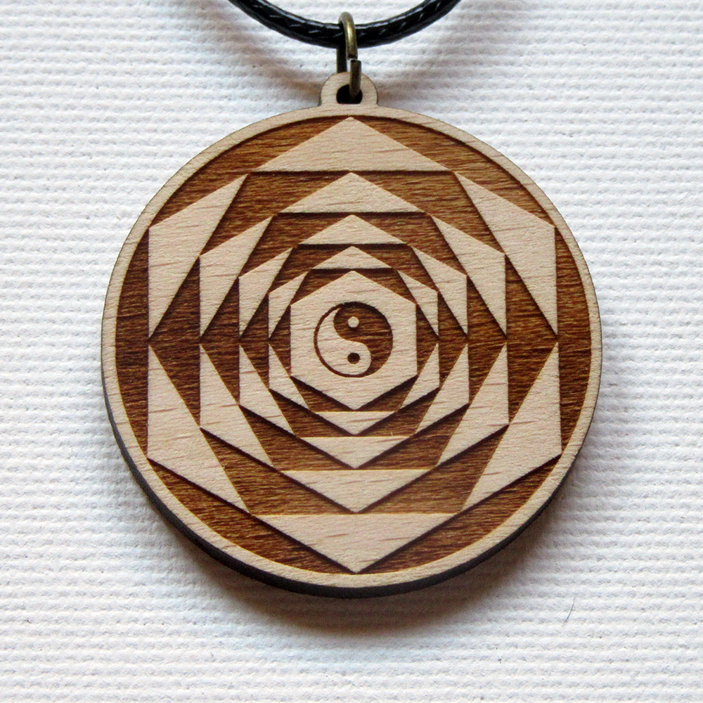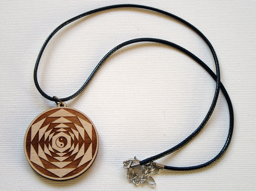 Medalion de lemn gravat – Mandala cu Simbolul Yin si Yang cu diametrul de 4 cm.