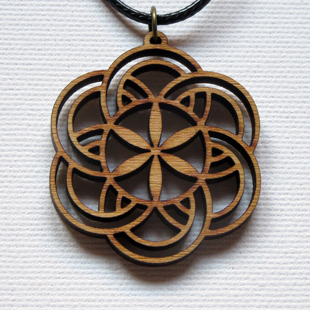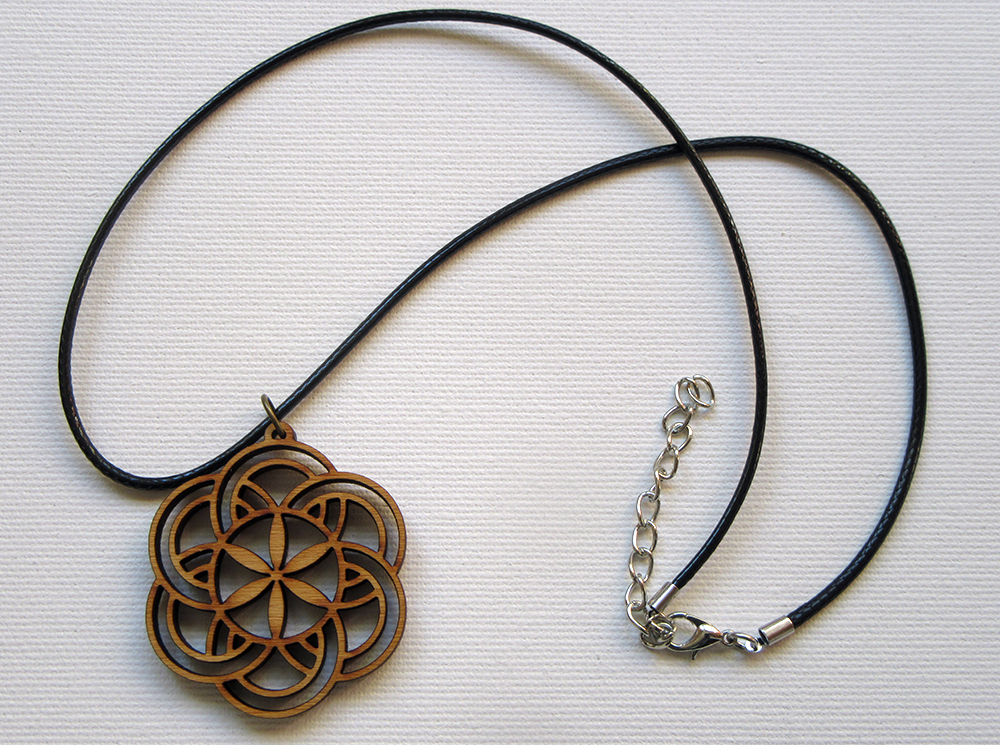 Medalion de lemn gravat – Mandala Floarea Vietii cu diametrul de 4.2 cm.