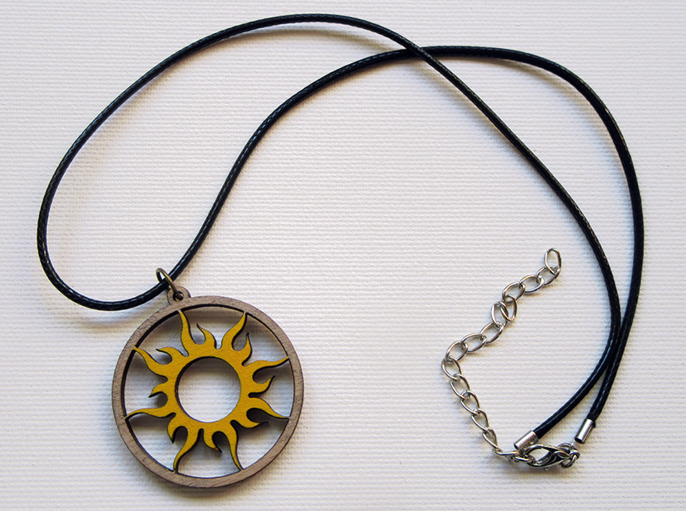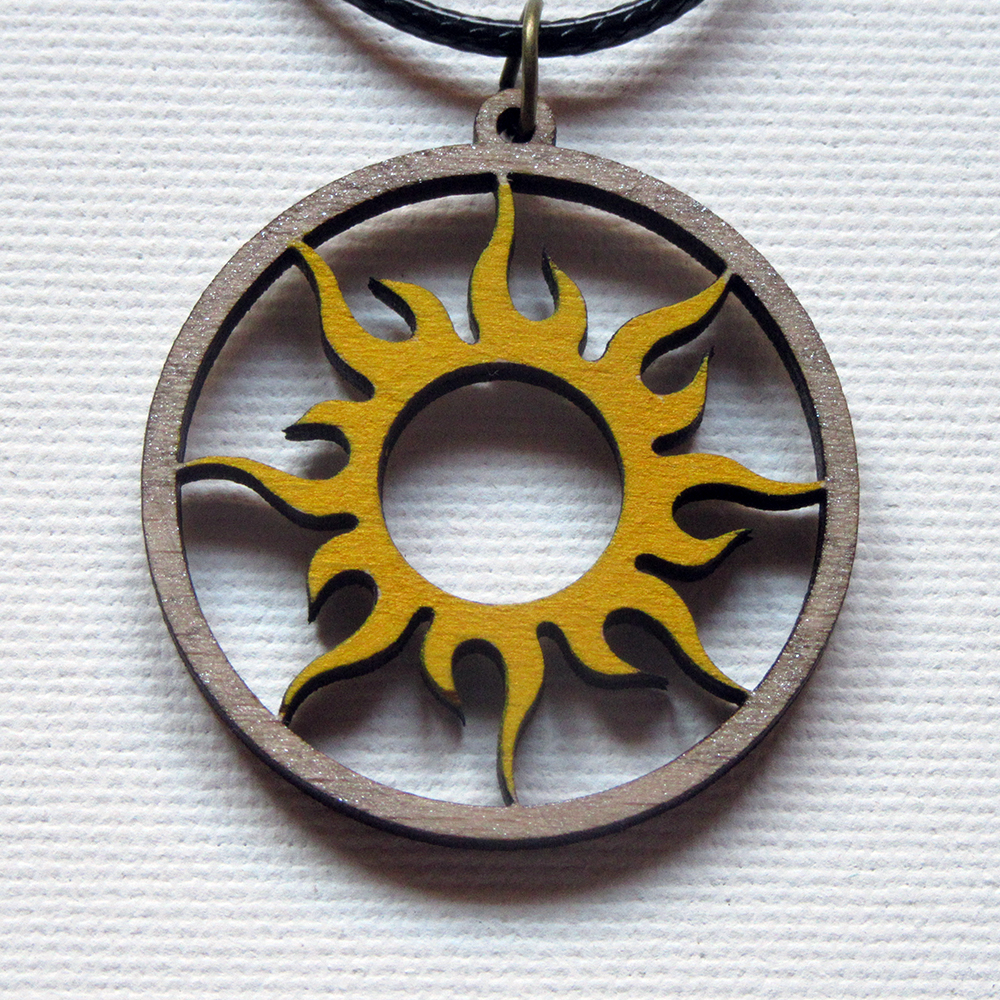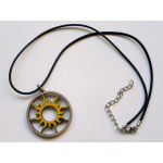 Medalion de lemn gravat – Mandala Soarelui pictata cu diametrul de 4 cm.