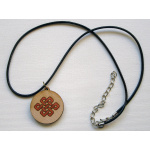 Medalion de lemn gravat – Nodul Mistic pictat bronz cu diametrul de 3 cm.