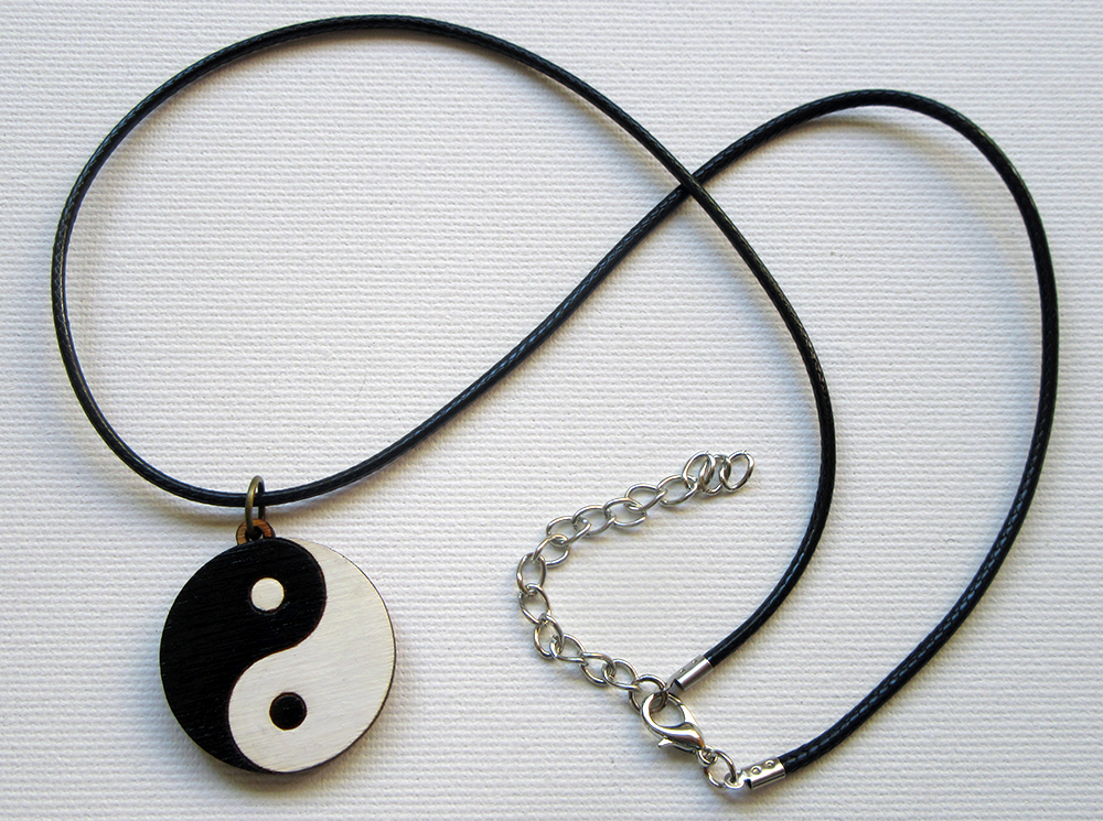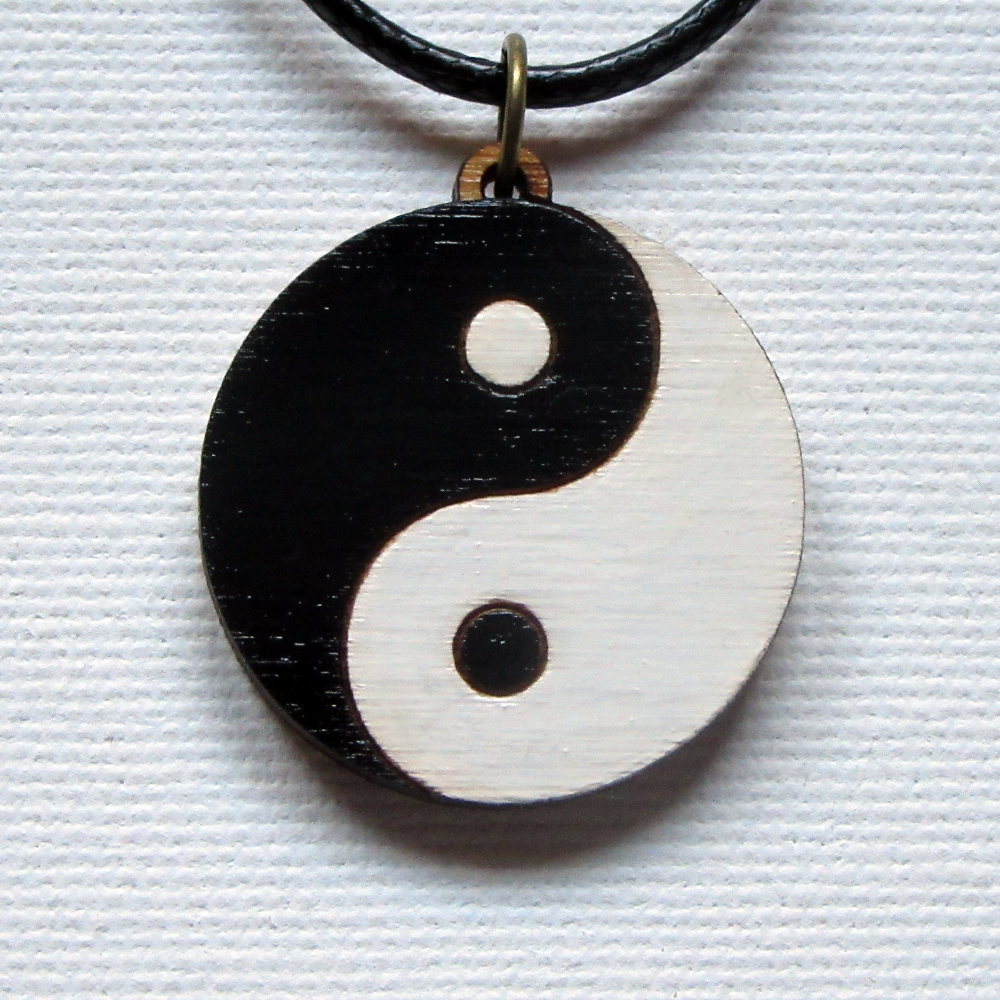 Medalion de lemn gravat – Yin si Yang pictat cu alb si negru cu diametrul de 3 cm.