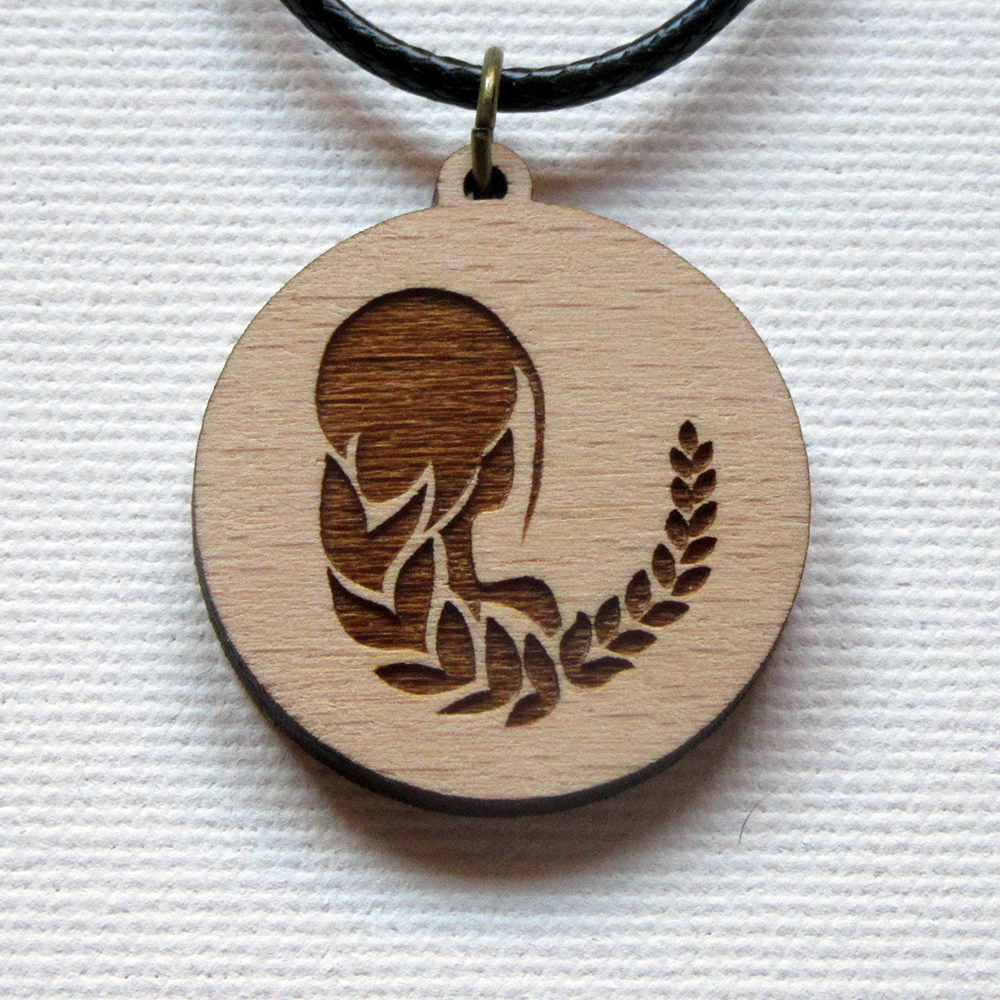 Medalion de lemn gravat – Zodia Fecioara cu diametrul de 3 cm.