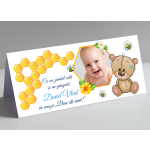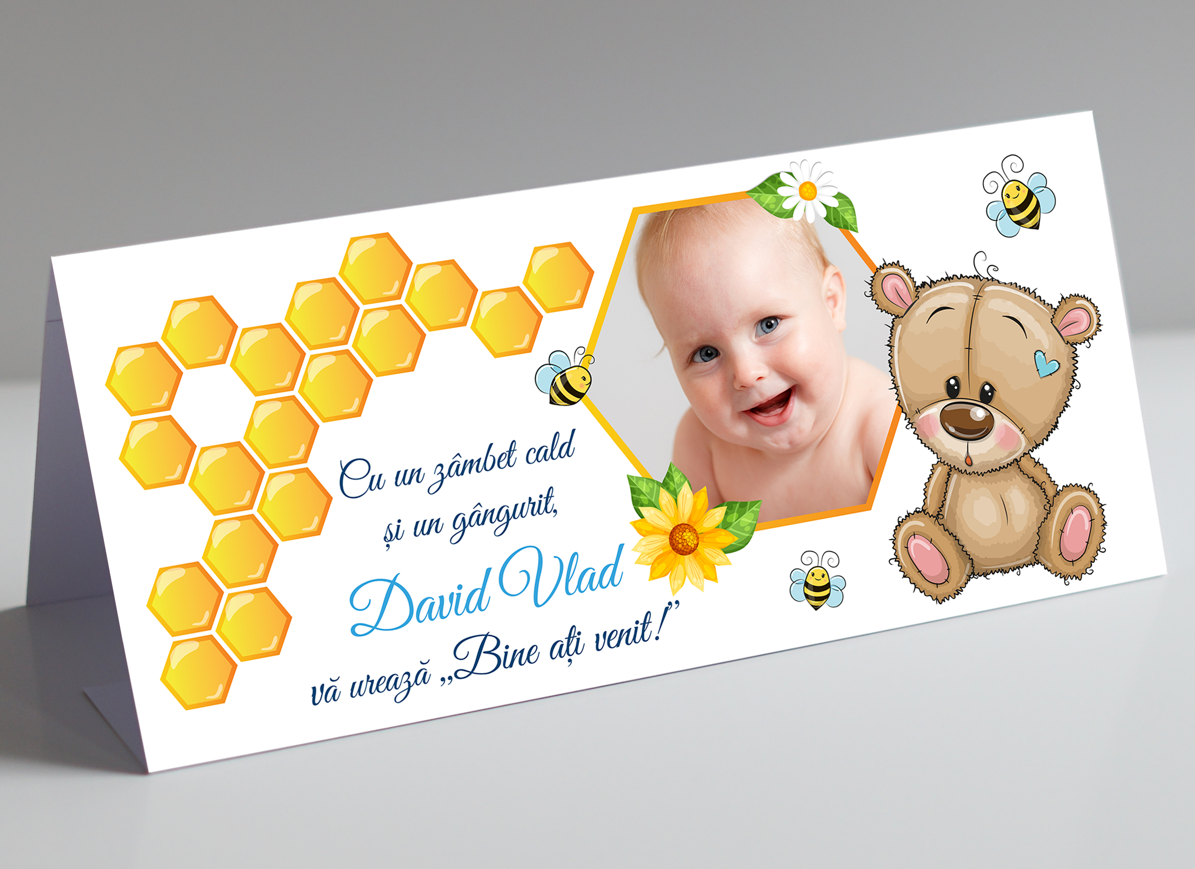 Plicuri de bani cu fotografia bebelusului si Ursulet, care pot fi folosite in acelasi timp si sub forma de carduri de masa.