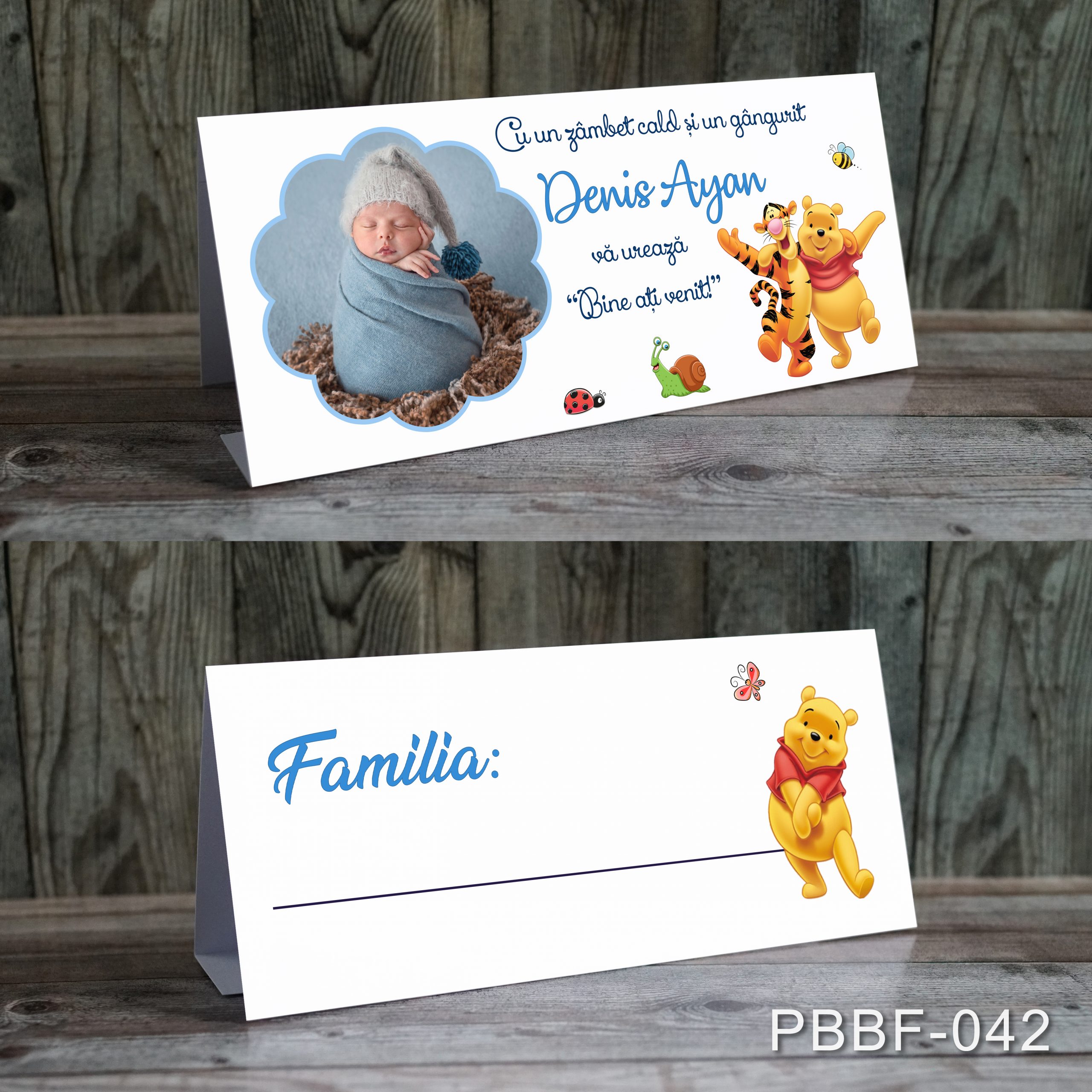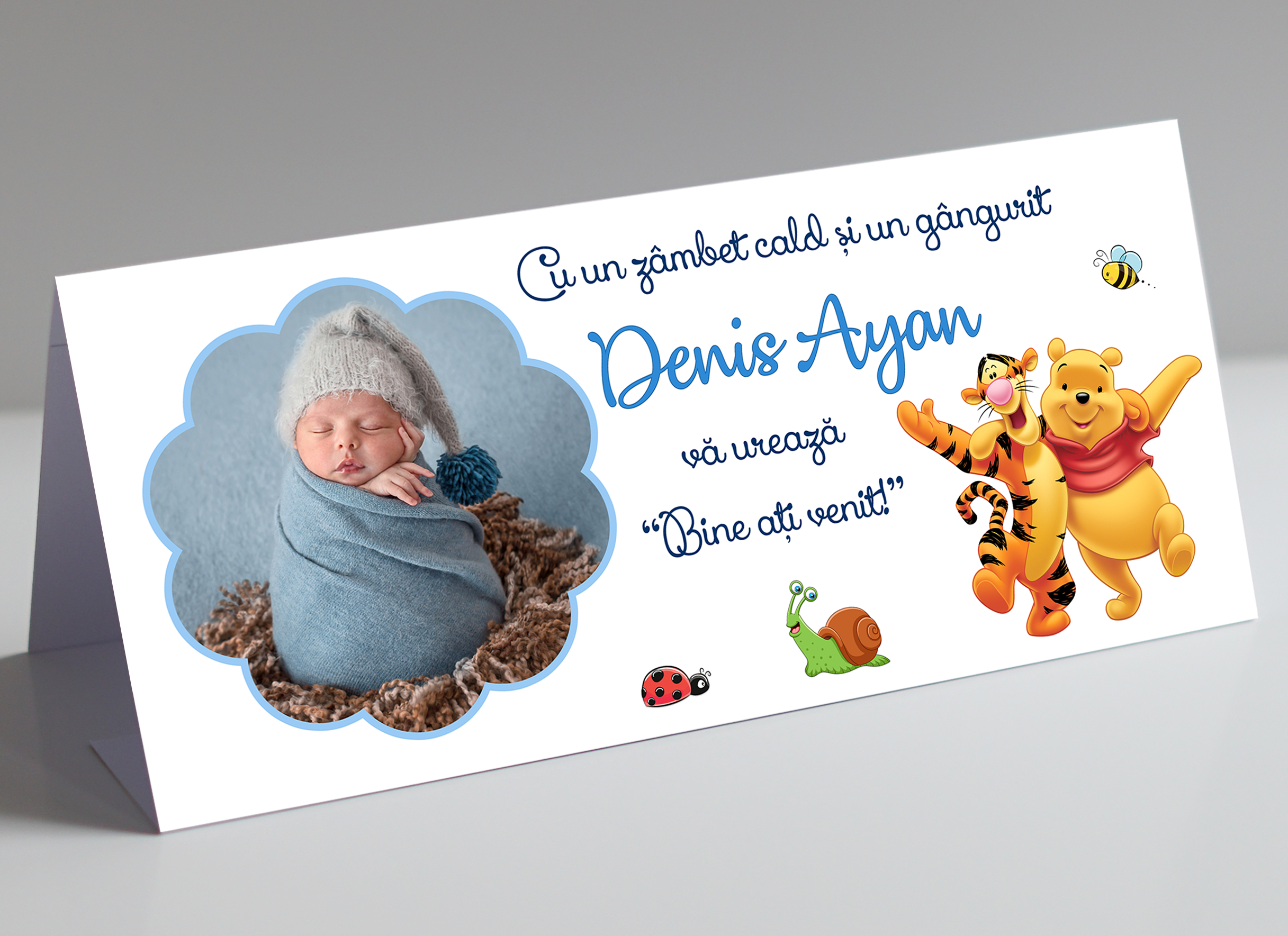 Plicuri de bani cu fotografia bebelusului si Winnie the Pooh, care pot fi folosite in acelasi timp si sub forma de carduri de masa.