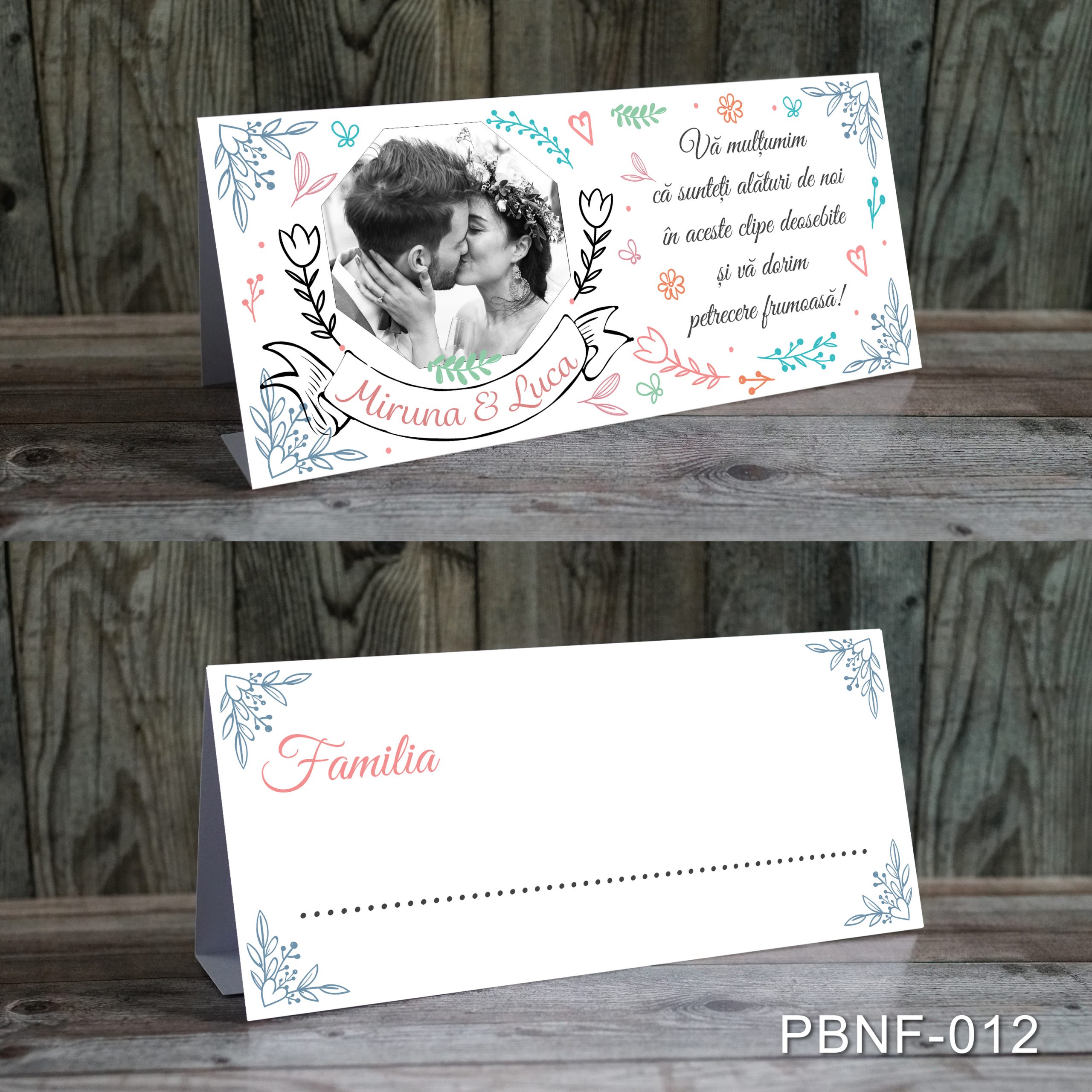 Plicurile de bani pentru nunta cu poza au si functionalitatea de carduri de masa si contin un mesaj de bun venit. Optional, se pot printa si cu numele persoanelor participante.