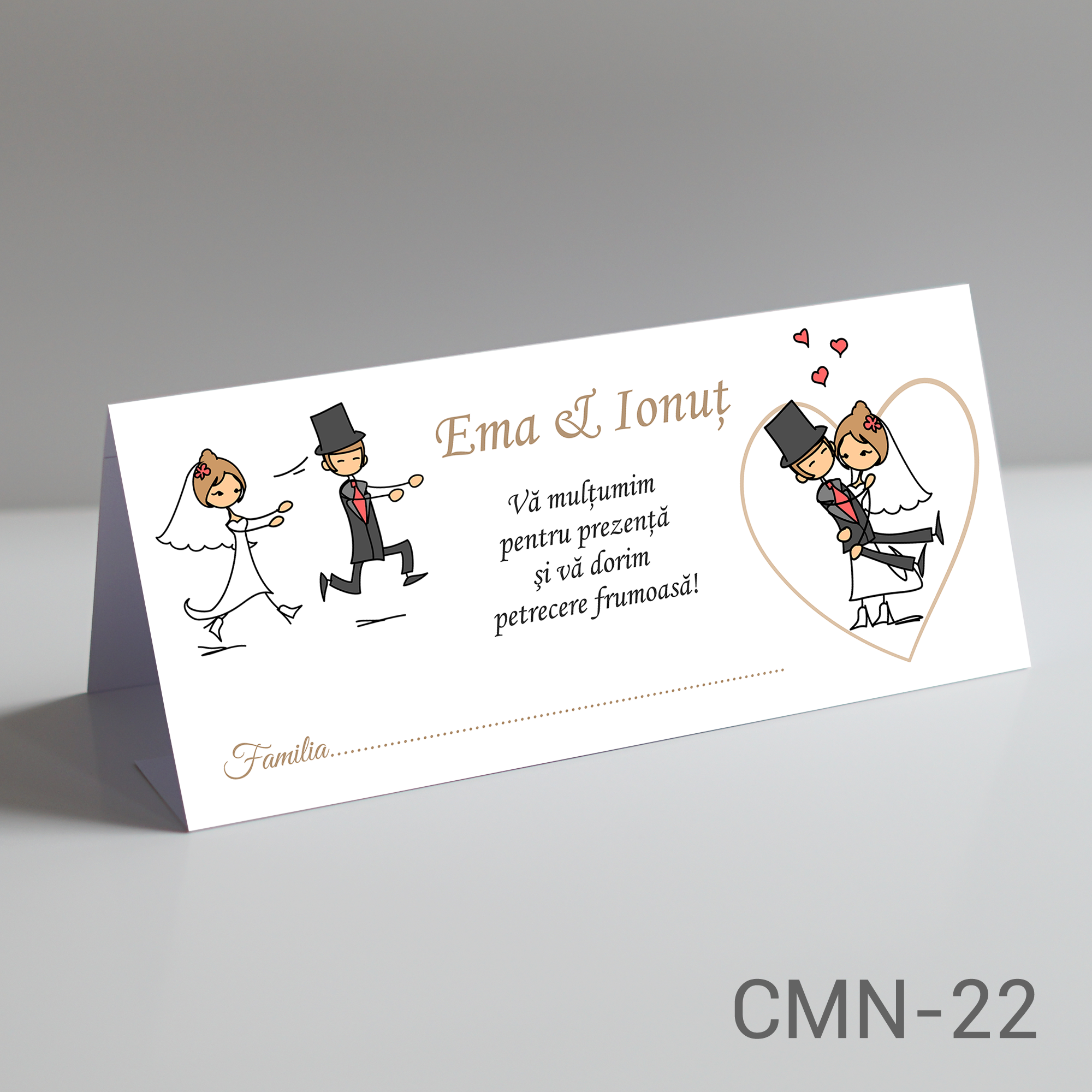 Plicurile de bani pentru nunta au si functionalitatea de carduri de masa si contin un mesaj de bun venit. Optional, se pot printa si cu numele persoanelor participante.