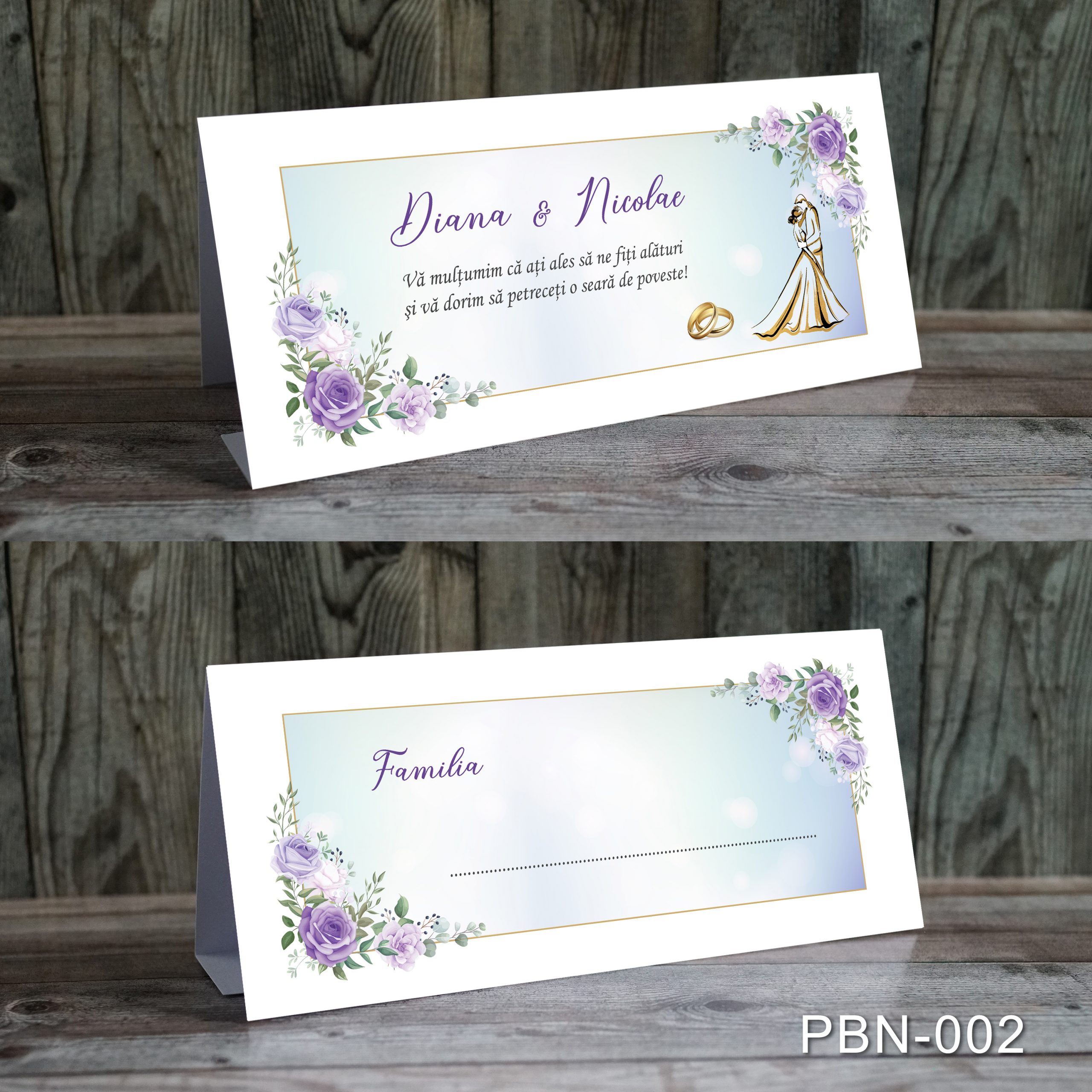 Plicurile de bani pentru nunta au si functionalitatea de carduri de masa si contin un mesaj de bun venit. Optional, se pot printa si cu numele persoanelor participante.