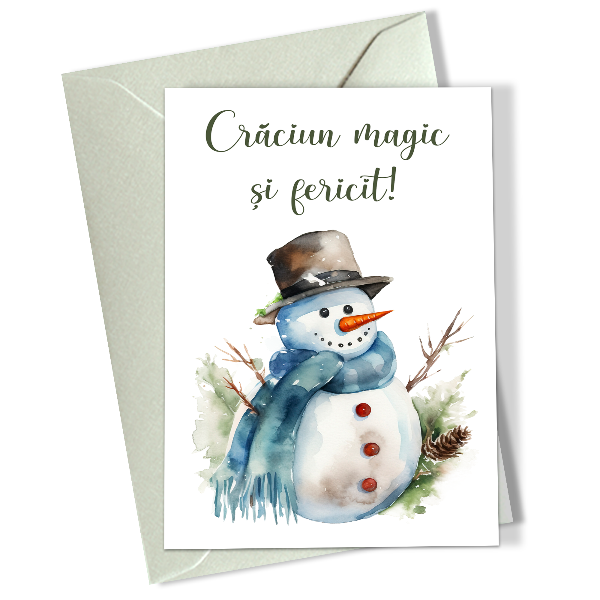 Set 5 felicitari de Craciun 10×15 cm cu plic alb sidef inclus – Om de zapada – FC-98