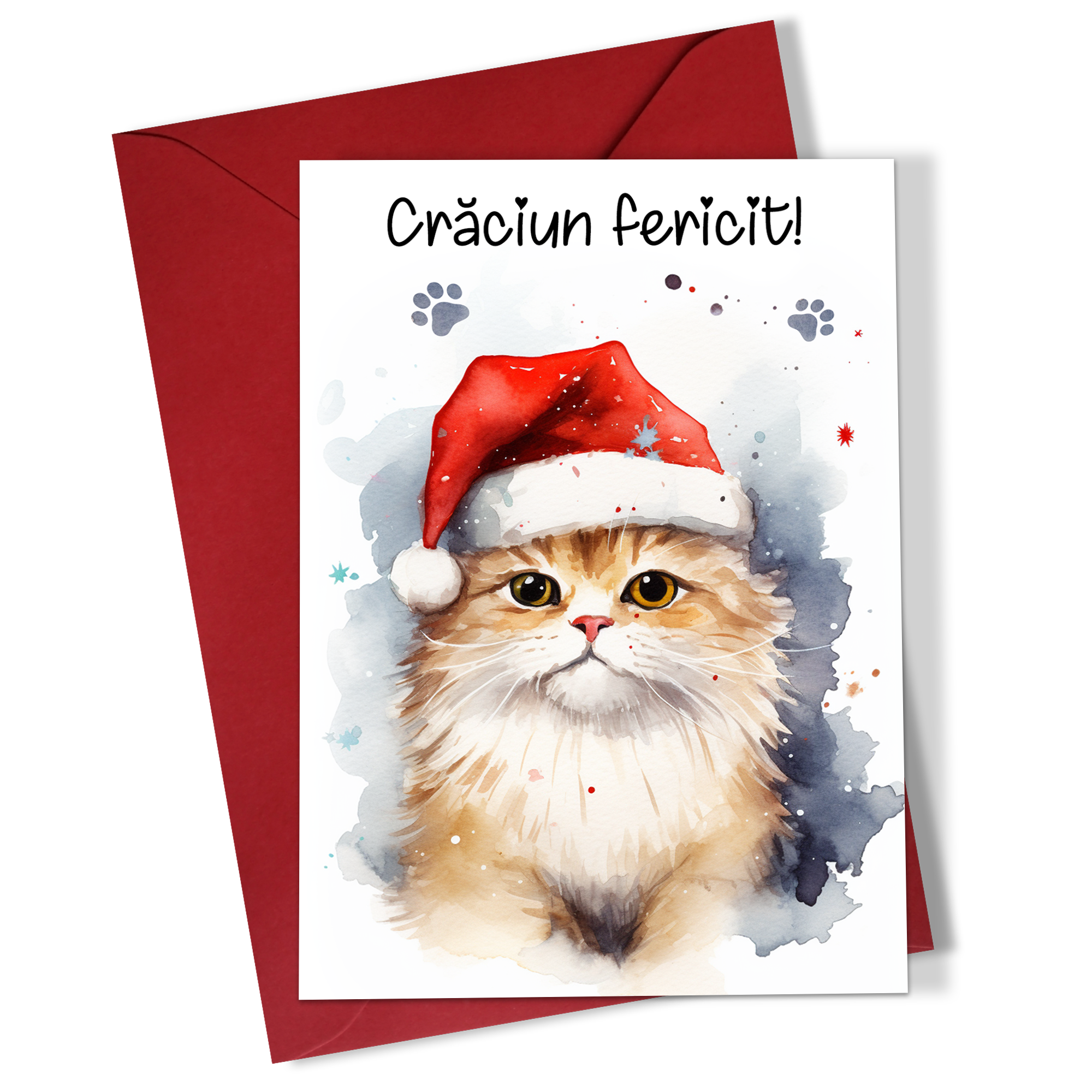 Set 5 felicitari de Craciun 10×15 cm cu plic rosu inclus – Pisica – FC-115