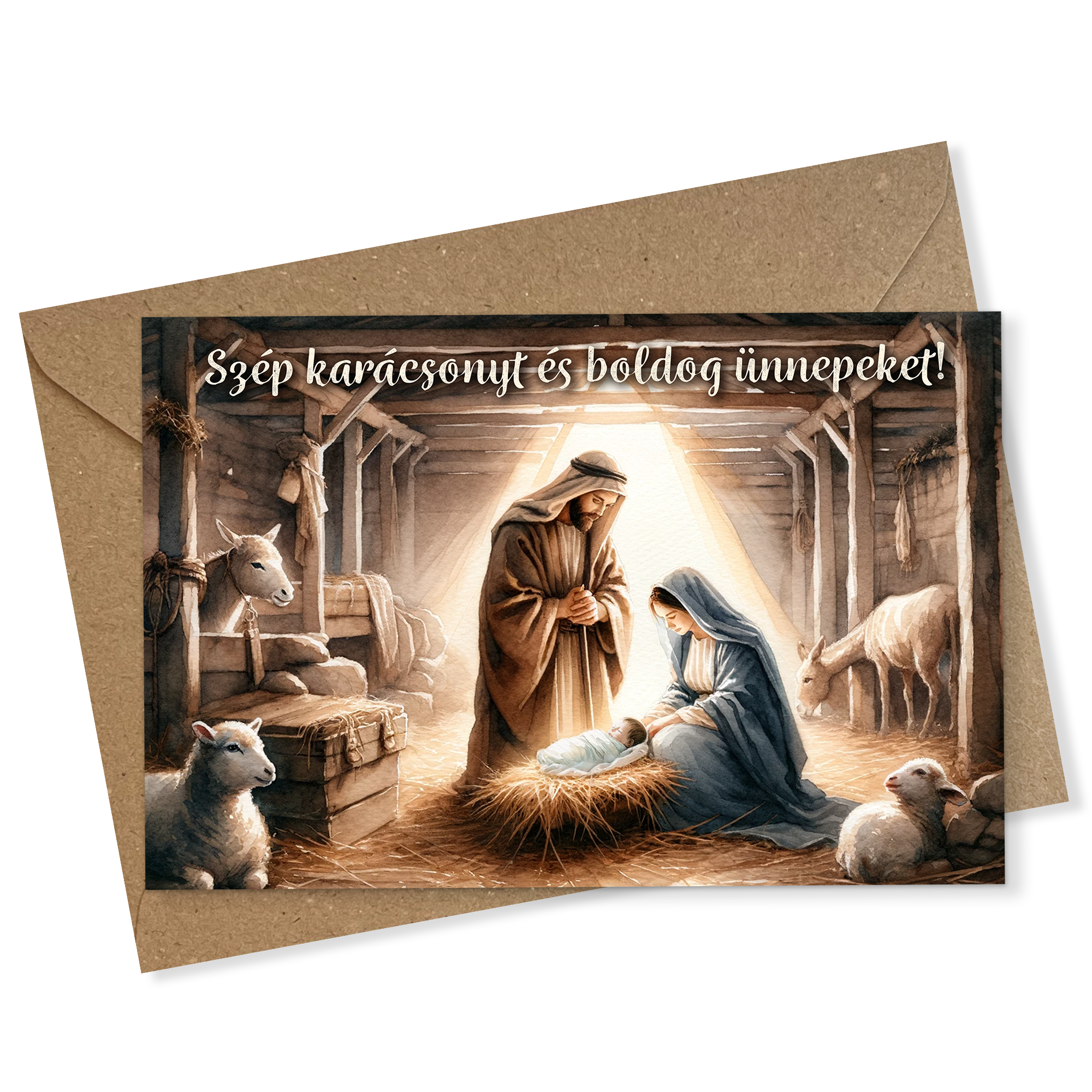 Set 5 felicitari de Craciun cu Nasterea Domnului in maghiara 10x15 cm cu plic ivoire inclus FC-61