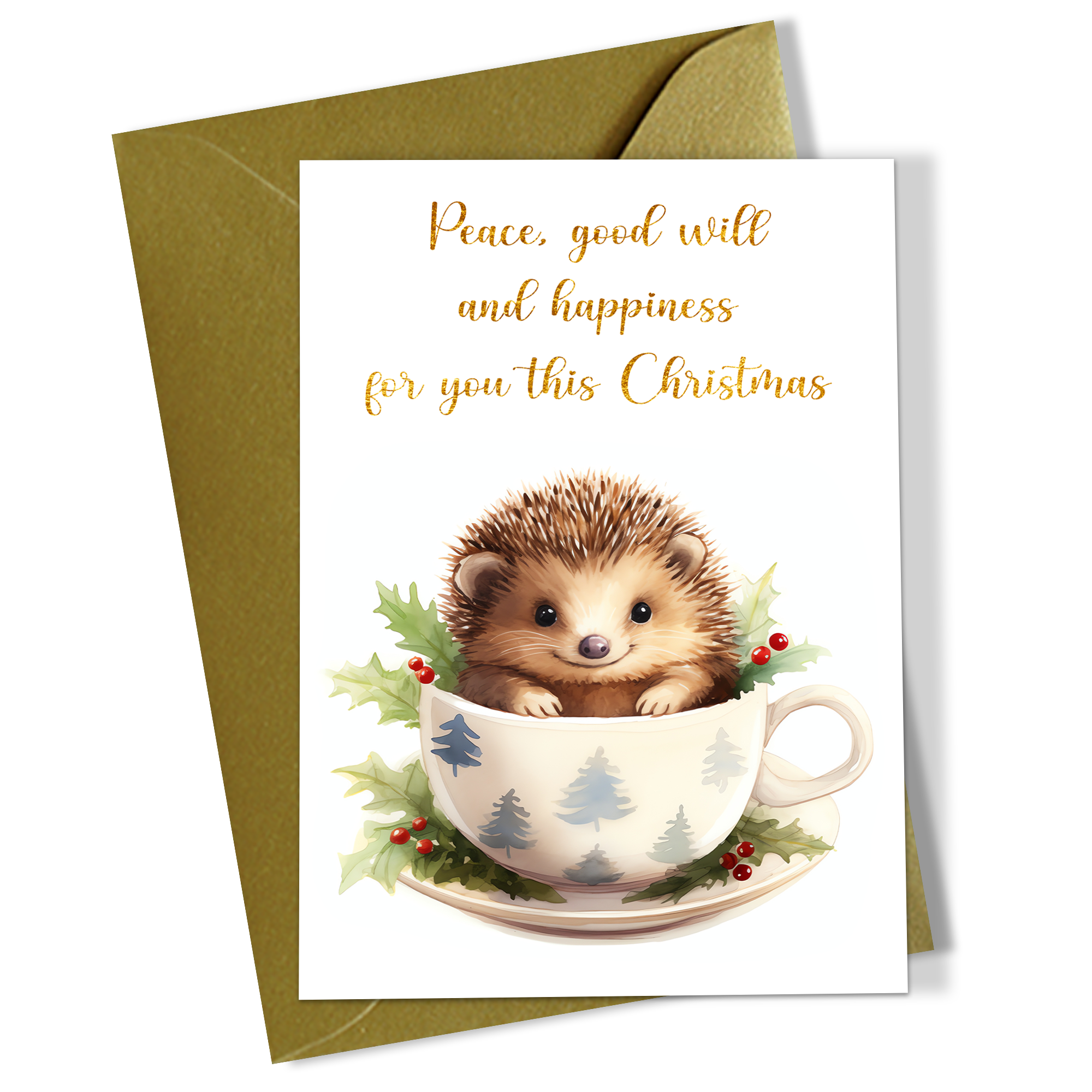 Set 5 felicitari in engleza de Craciun 10×15 cm cu plic auriu inclus – Arici – FC-124