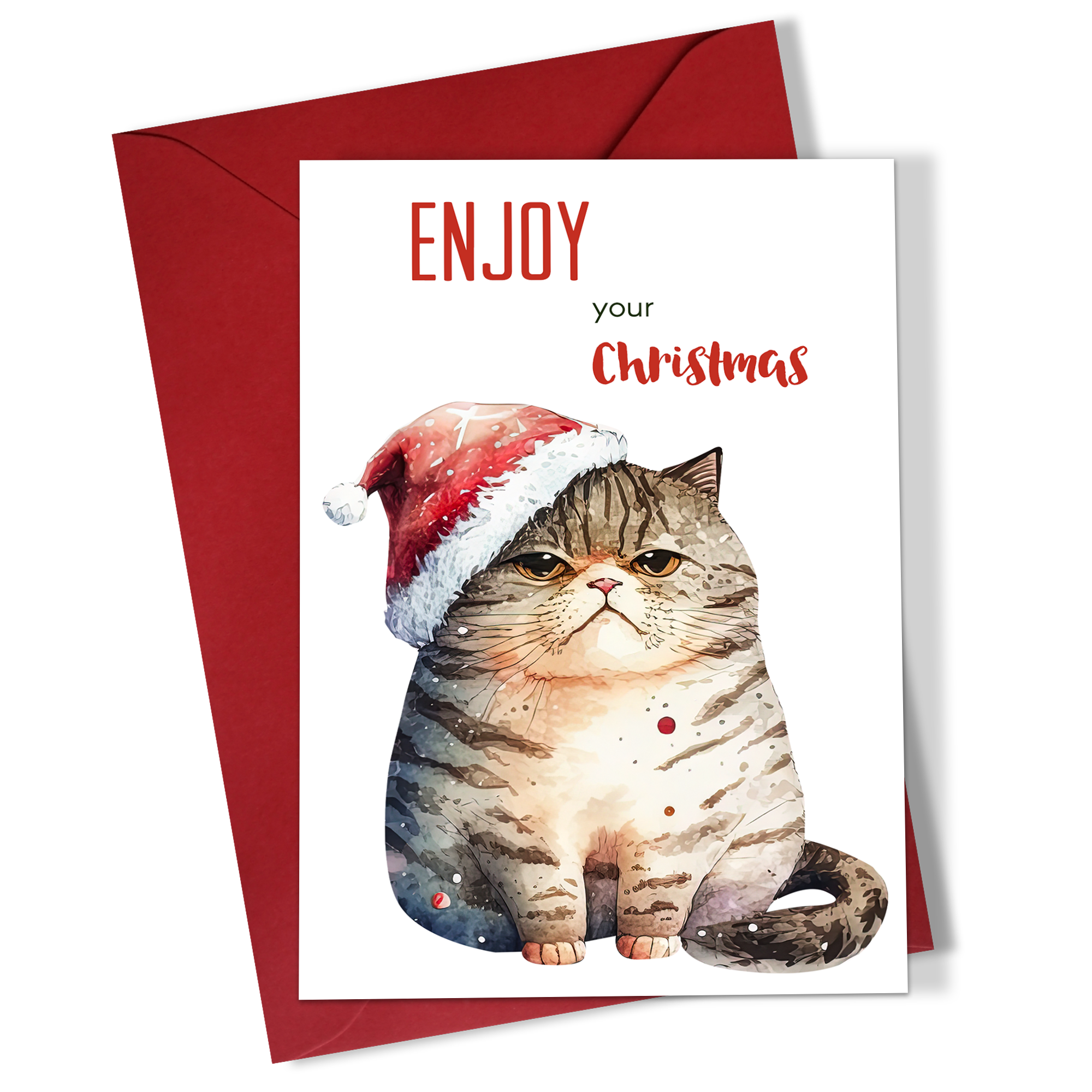 Set 5 felicitari in engleza de Craciun 10×15 cm cu plic rosu inclus – Pisica – FC-73
