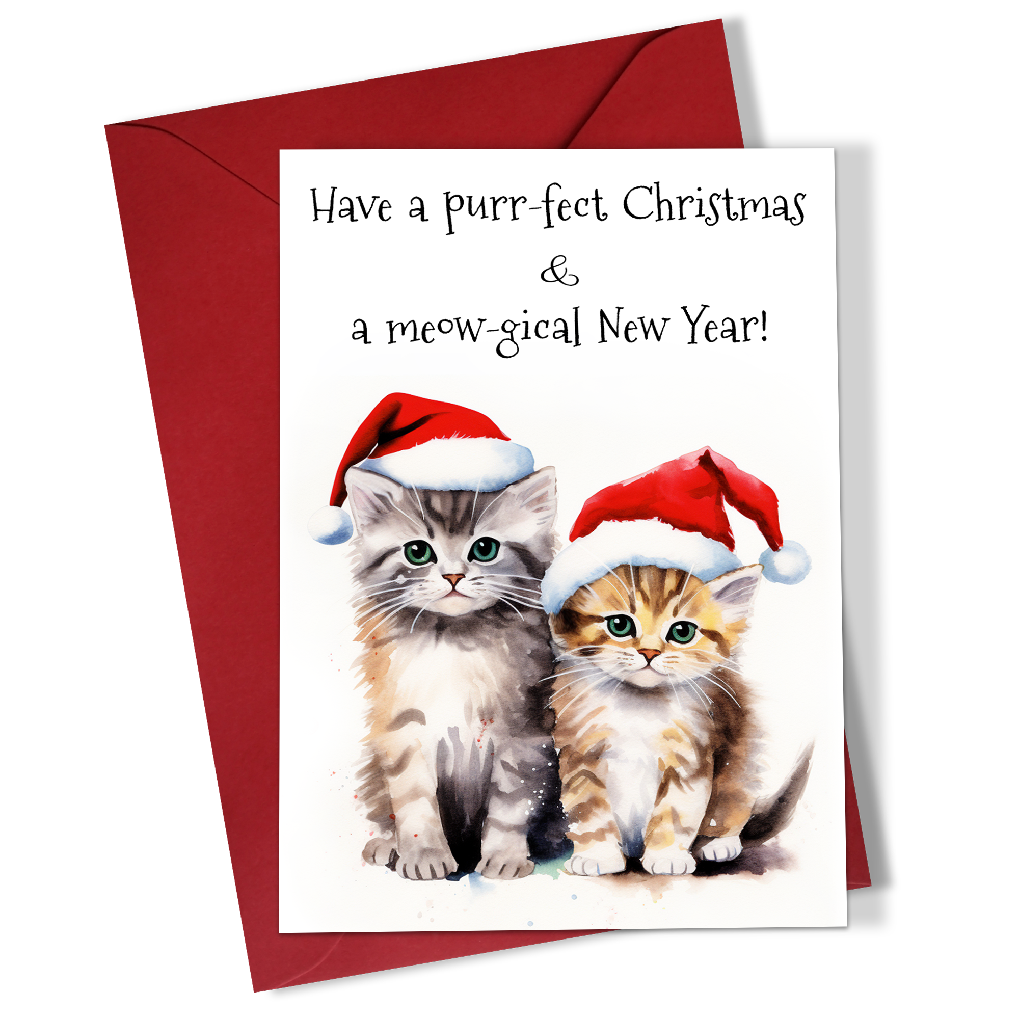 Set 5 felicitari in engleza de Craciun 10×15 cm cu plic rosu inclus – Pisici – FC-77